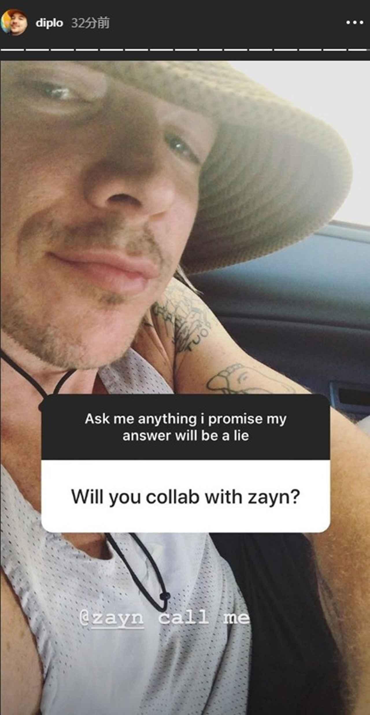 そうすると、ディプロは自身のセルフィーと一緒に「ゼイン、電話して」とラブコール。しかもその際、しっかりとゼインにこの答えが届くように、@マークをつけてゼインが見られるように設定。このコラボについてはディプロもかなり前向きなよう。