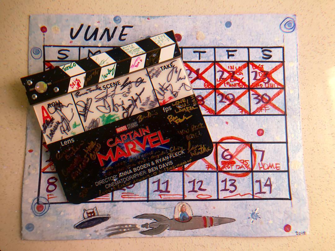 ブリーがインスタグラムに投稿したのは、撮影のスケジュールが書かれた紙と、キャプテン・マーベルのロゴが描かれたカチンコ。
