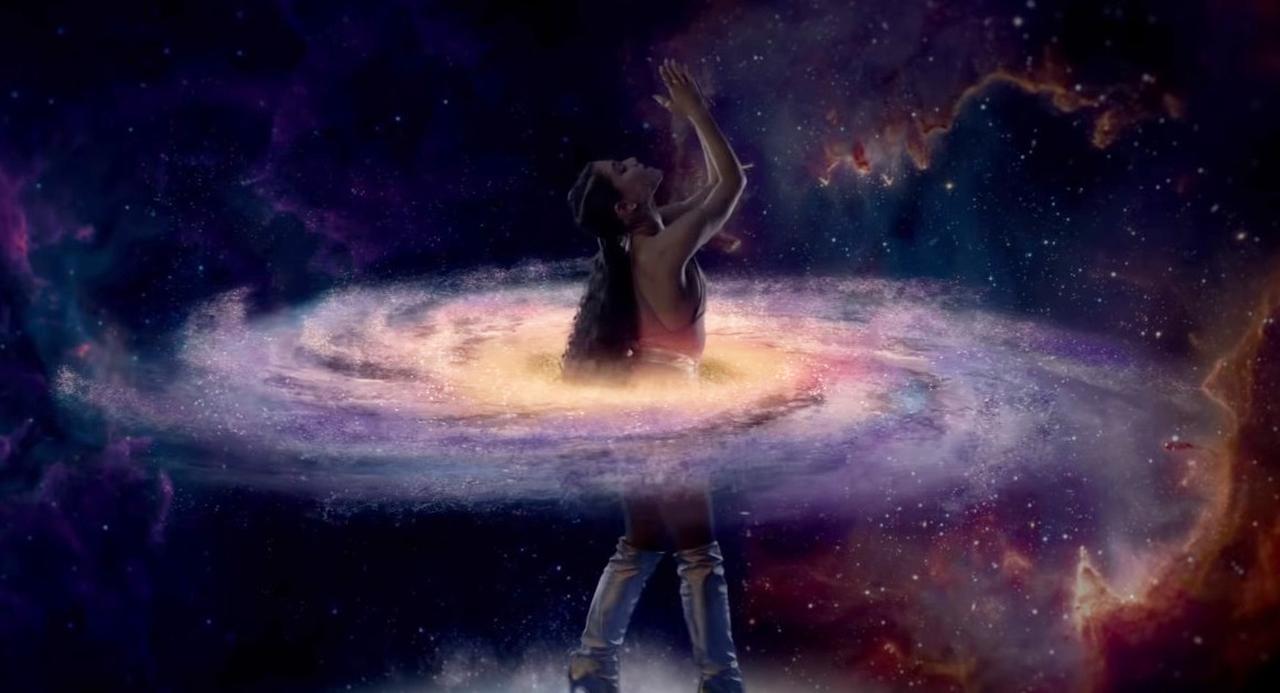 地球の表面に立ったアリアナが、腰を揺らしながら銀河系をまるでフラフープのように回すシーンからMVがスタート。このシーンには、「宇宙を司っているのは女性」という壮大なメッセージが込められているように受け取れる。