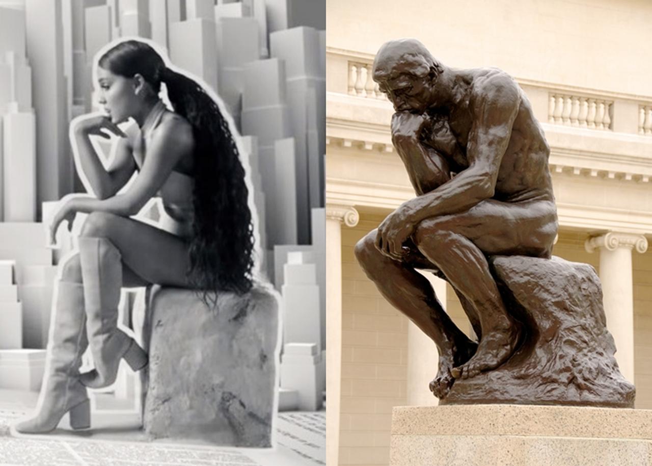 このアリアナの姿は、かの有名なロダン作のブロンズ像「考える人」にそっくりだとの声も。