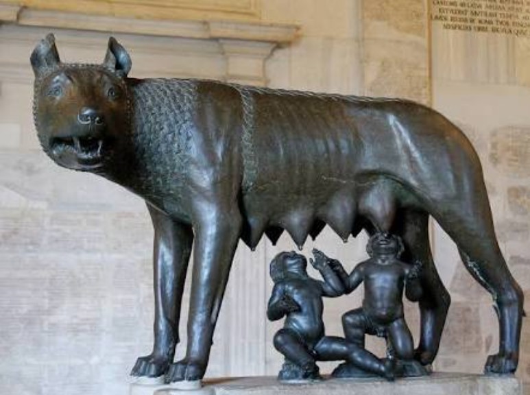 ローマを建設したと伝えられているこの兄弟は、狼によって育てられたとされており、その姿を模して13世紀頃に作られた像が、アリアナのこのポーズの参照元となっているのではないかと写真を並べて比較するSNSユーザーもいる。