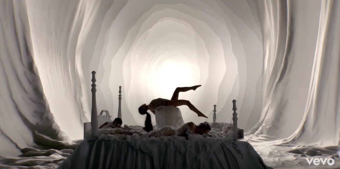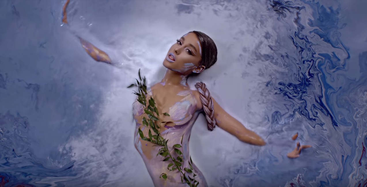 その中央に、全裸にボディペイントだけを施したアリアナが横たわるというなんともセクシーな様子は、同曲のカバー写真にも使われており、MV公開前から話題となっていた。