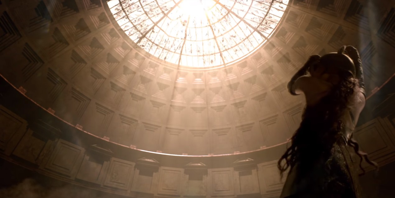 「これどこかで見たことがある!」と人々を最もハッとさせたのは、女性たちを従えたアリアナが地上に座る1人の女性に向かって手を伸ばすシーン。