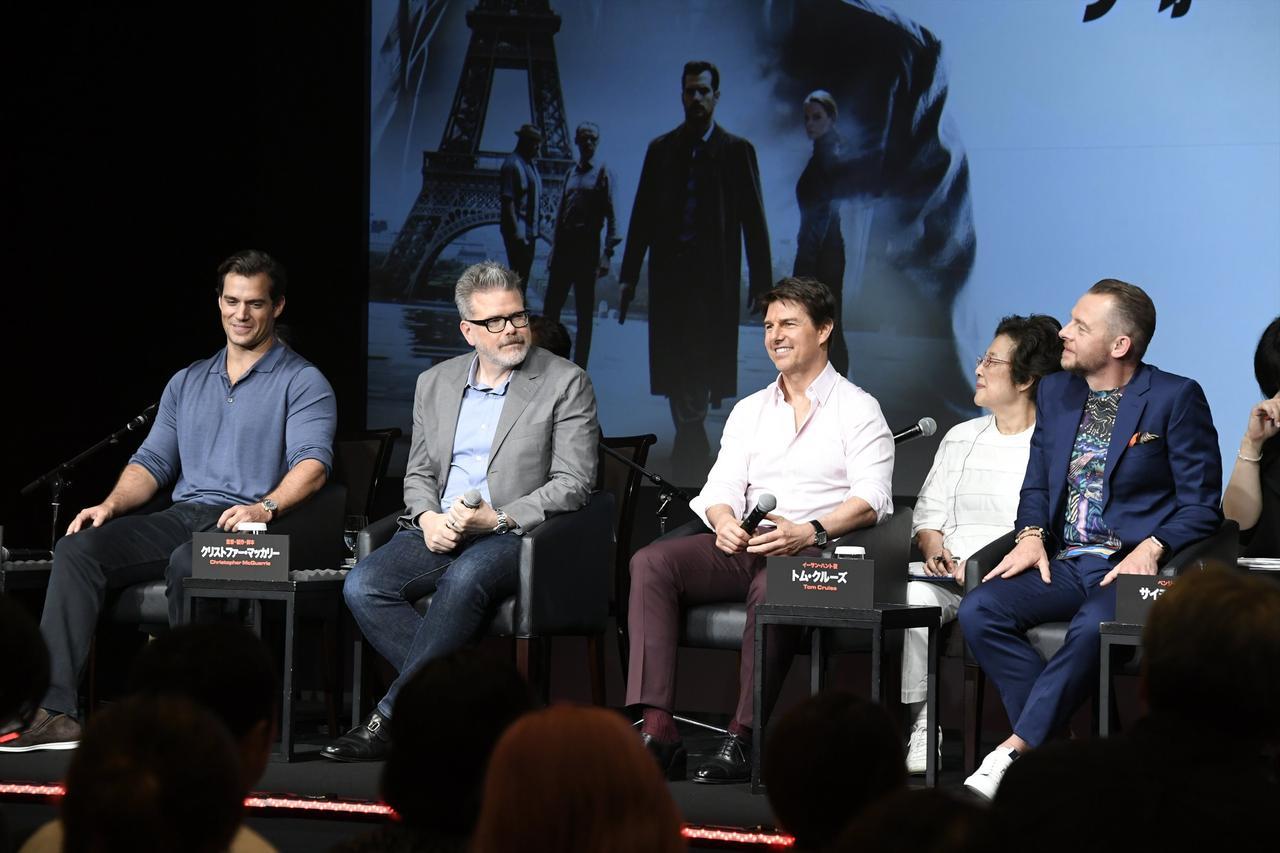 映画『ミッション・インポッシブル/フォールアウト』のジャパンプレミアのため、トム・クルーズと、ヘンリー・カヴィル、サイモン・ペッグ、クリストファー・マッカリー監督の4人が来日した。