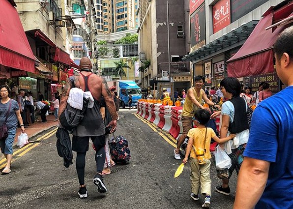 そう、ドウェインのあまりの大きさにびっくりして、道行く人々が彼を見上げるように振り返るのだ。この写真を公開したドウェインは、「どこに行ってもまわりになじめるから楽しいよ」とおちゃめなジョークを炸裂。