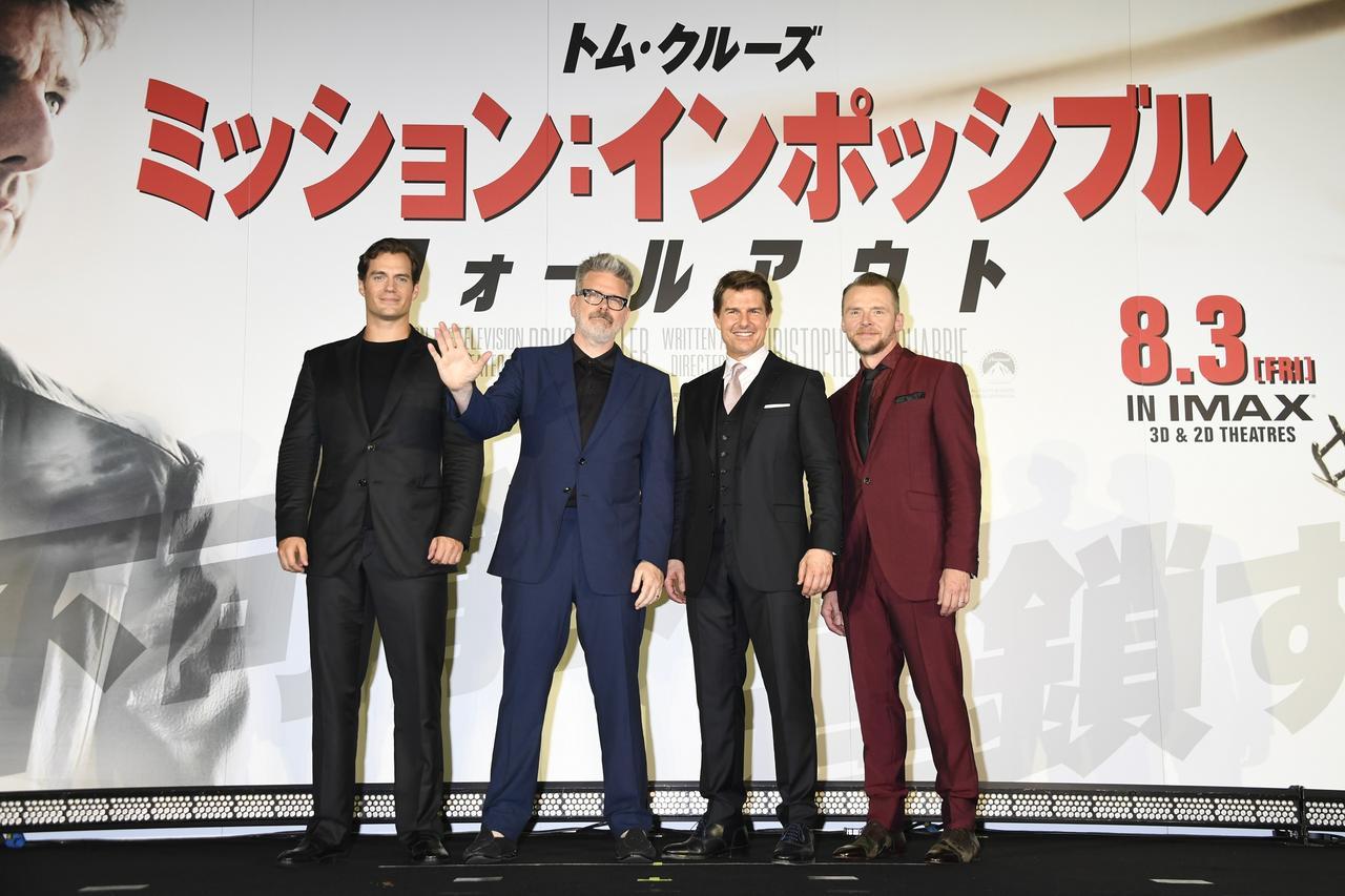 左からヘンリー・カヴィル、クリストファー・マッカリー監督、トム・クルーズ、サイモン・ペッグ。
