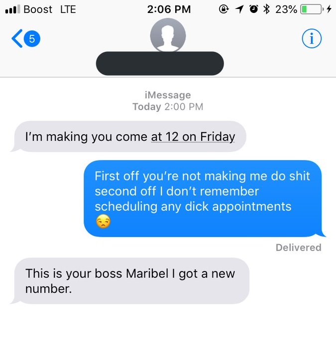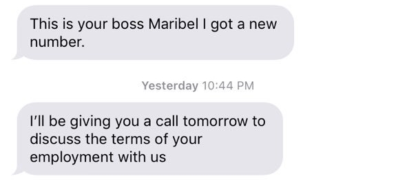 「私はあなたの上司のマリベルよ。これは私の新しい番号なの」