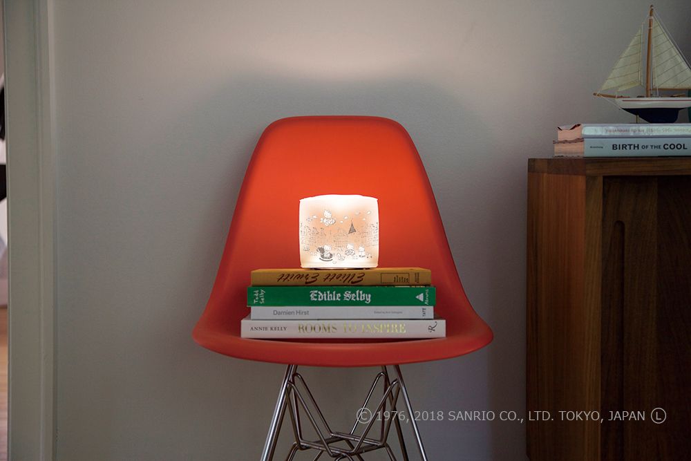 ・JANコード :4562412600460・上代 :¥4,000(税別)・素材:乳白色PVC・サイズ:直径12.7cmx高さ10.8cm折り畳み時高さ2.5cm・重さ:約125g・LED:暖色LED10個・点灯モード :弱+中+強+点滅・バッテリー :リチウムイオン電池内臓・充電:直射日光7時間で満充電・点灯時間 :満充電で約4時間~24時間点灯・その他:充電残量簡易表示LED付き防水対応(IP67準拠)・主な販売店 :PLUS ONE dot SHOPサンリオオンラインショップその他 ネットショップ