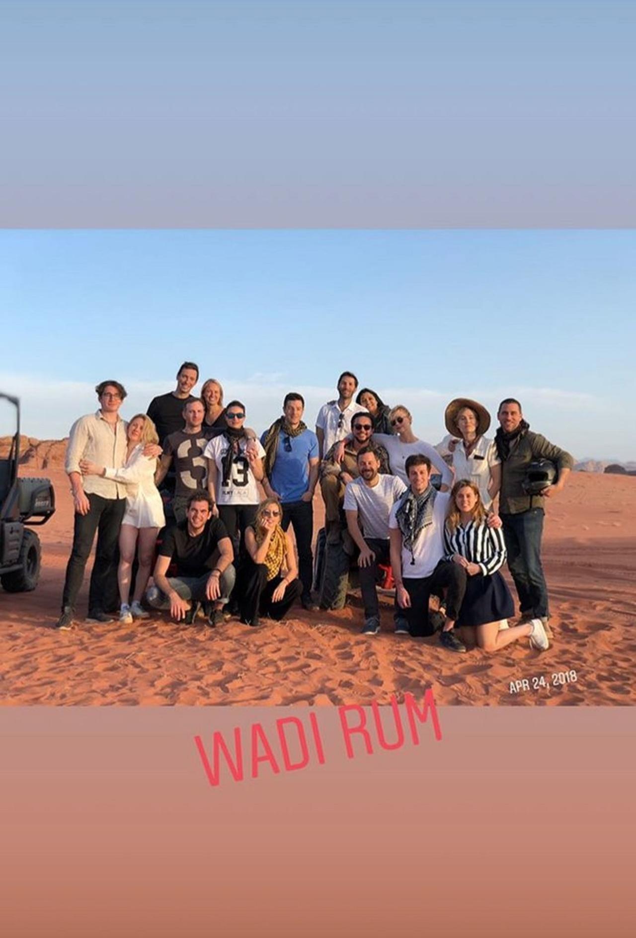 カーリーとベアトリス王女は数年前から仲が良く、今年4月にはカーリーの婚約者ジョシュアら複数の友人たちと一緒にヨルダン旅行に出かけたことも。(後列右から3番目がカーリー。前列右端がベアトリス王女。©Karlie Kloss/ Instagram
