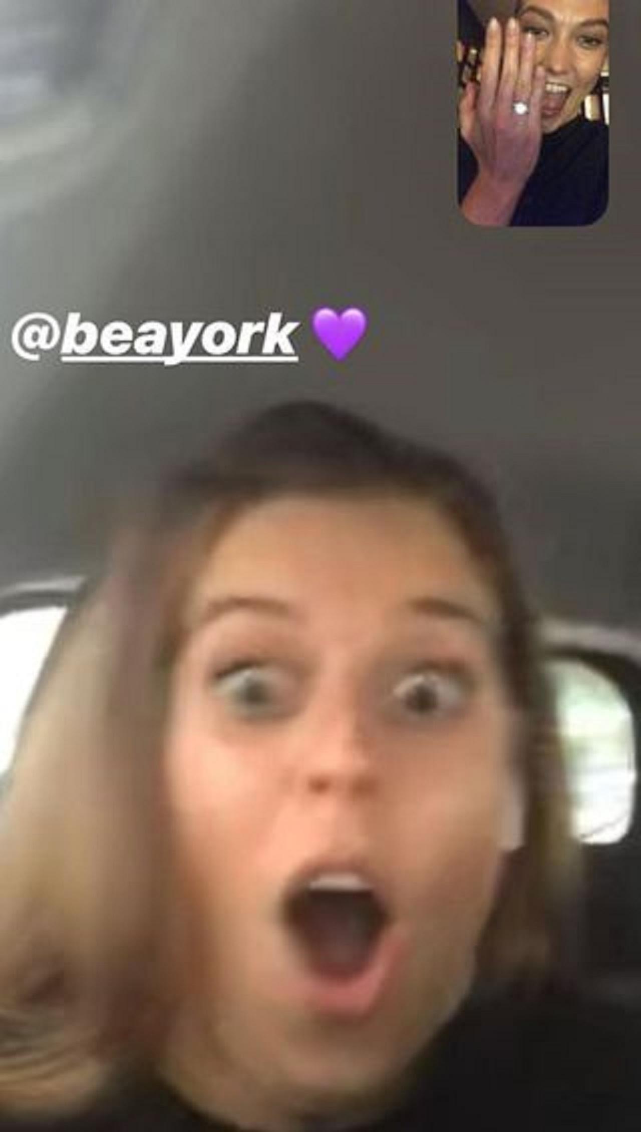 婚約の喜びに舞い上がりすぎて、ベアトリス王女のアカウントが世間には内緒のものであることを忘れてしまったカーリー。ベアトリス王女はきっと、彼女の幸せそうな様子に免じて今回のうっかりミスを許してくれるはず! (フロントロウ編集部)