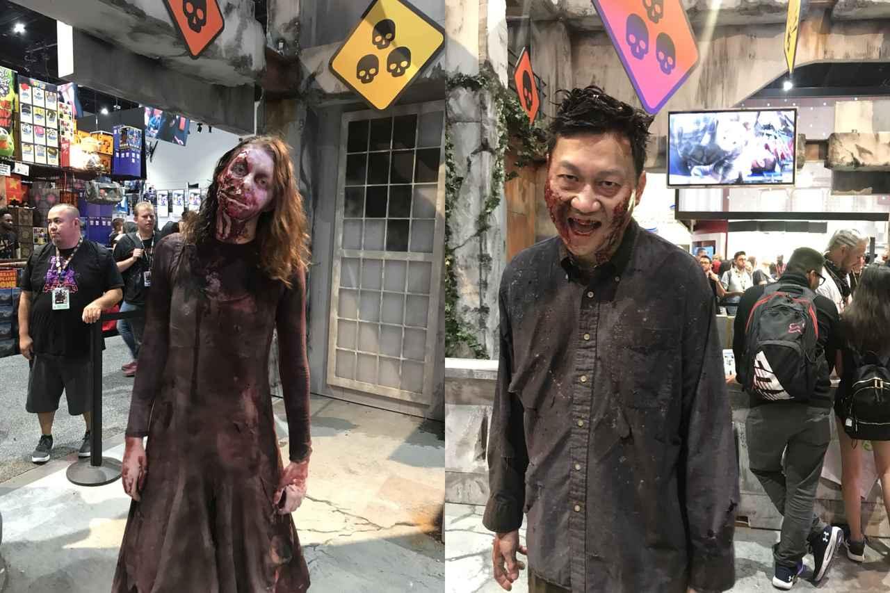 ブース内には数人のゾンビがつねにいて、そのメイクや服装がとてもリアルなため、たくさんの人が写真や動画撮影をしていた。役に完全に入りきっているため話しかけても反応はしないものの、セルフィーをお願いすると対応してくれたり、動画を撮影すると唸り始めてより動きを見せてくれたりと、サービス精神旺盛なゾンビたちだった。