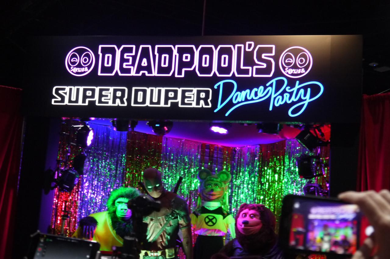 映画『デッドプール』のブースには、数分後ごとにデッドプールが歌い出すという仕掛けが。