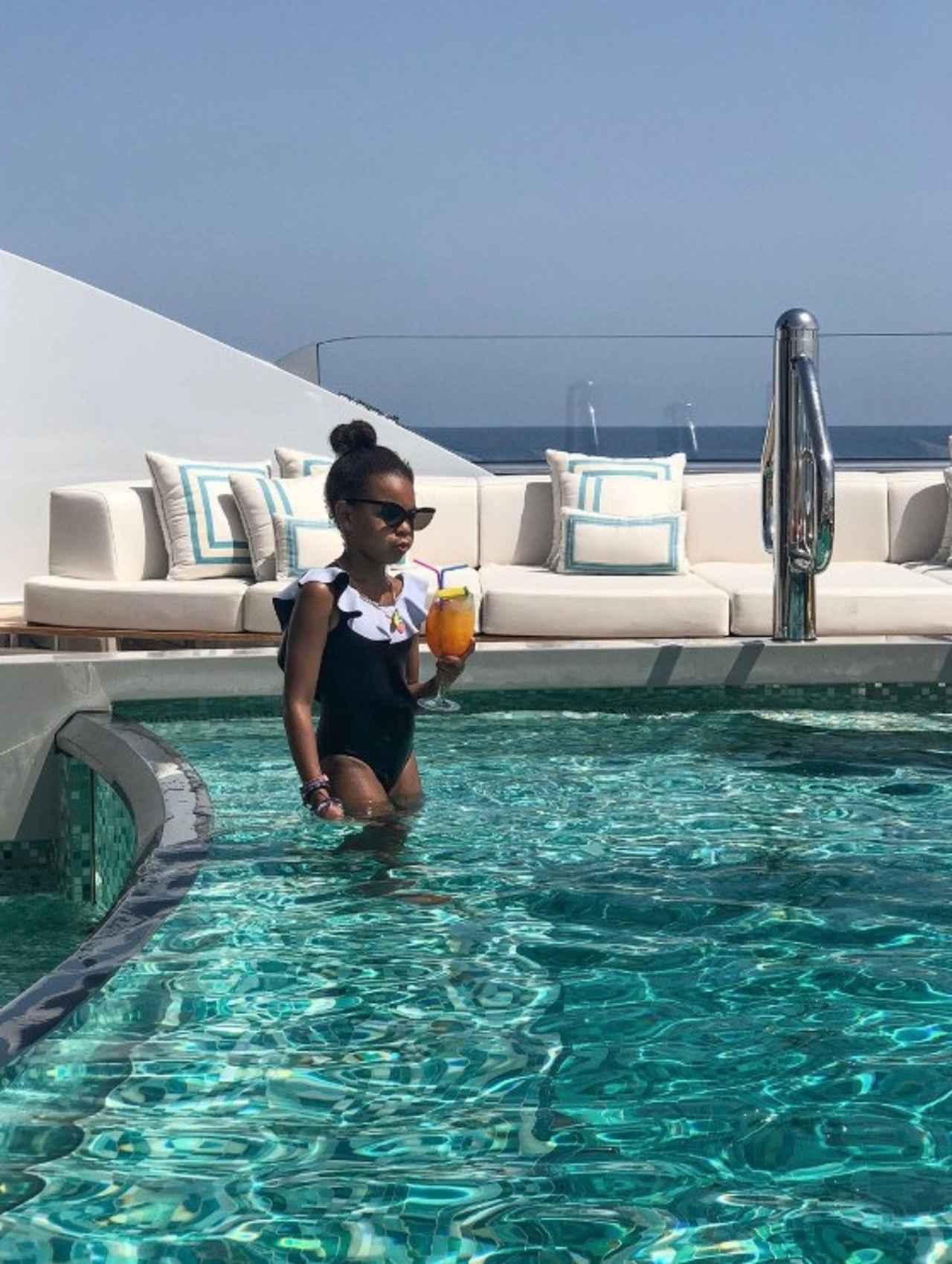 さらに、2人の姉で6歳の長女ブルー・アイヴィーちゃんがデッキの天井に設置されたおしゃれなブランコ型ソファで瞑想したり、船上プールでトロピカルなドリンクを堪能する姿の写真なども公開され、「優雅すぎる」と話題となっている。