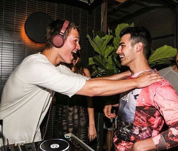DJとしてはマイアミのウルトラ・ミュージック・フェスティバルでもプレイしたことがある実力。写真はDNCEのジョー・ジョナスと。©Ansel Elgort/Instagram