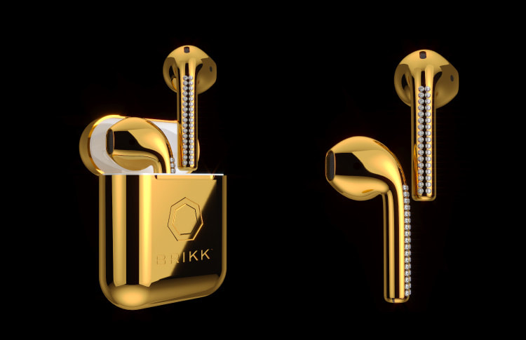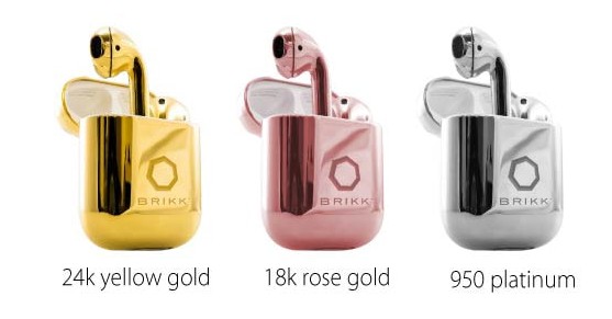 デジタル製品のカスタムを行うBrikkが出したのは、なんと純金を使ったAirpods。純金のゴールド、18金のローズゴールド、Pt950のプラチナのそれぞれで作られたこのカスタムアイテムは、4,995ドル(約50万円)。