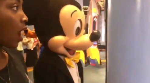 愛するミニーに手を出そうとした男性に、恋人としての威厳を見せたミッキーだった。一部始終の動画はこちらをチェック。(フロントロウ編集部)