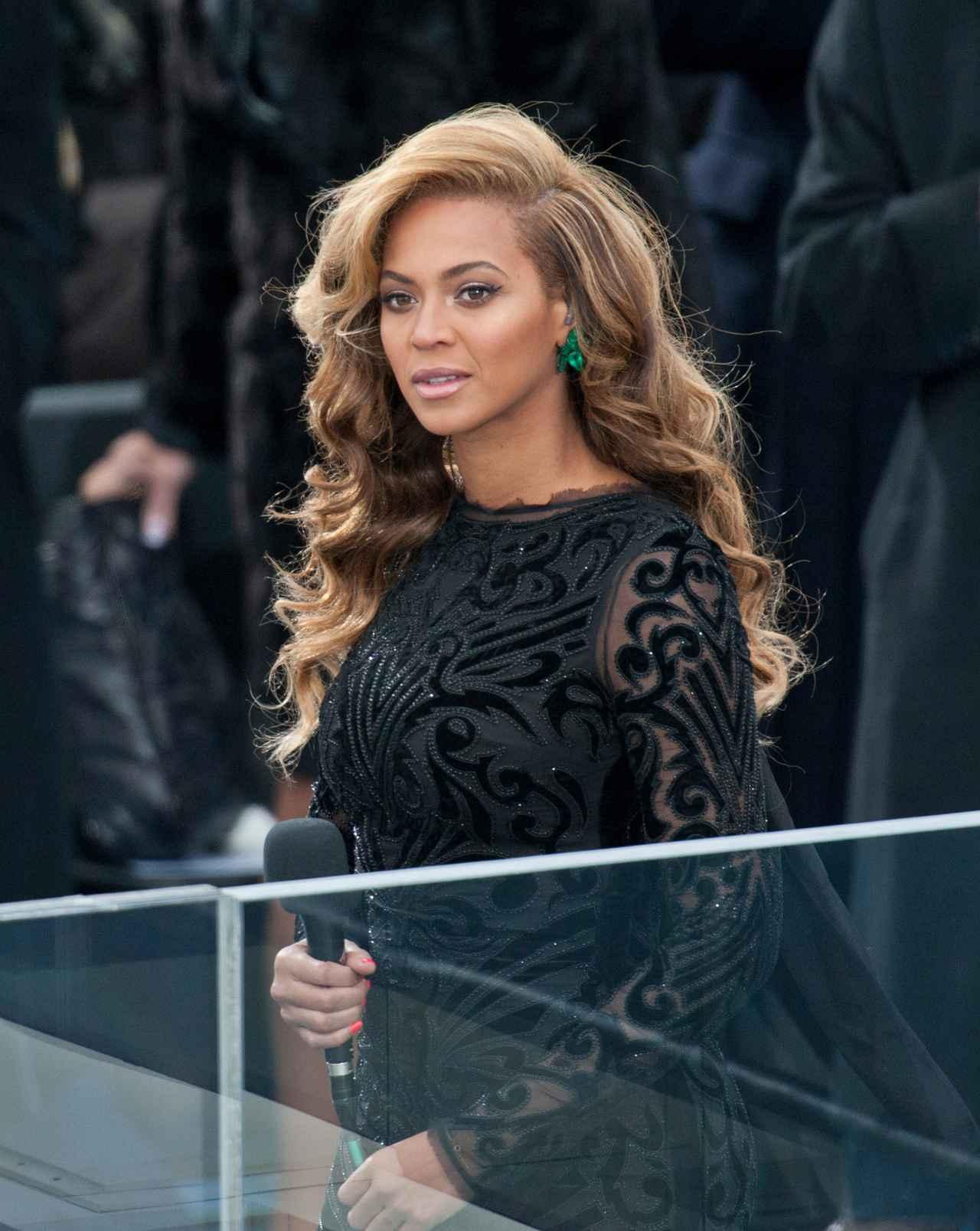 就任式で国歌斉唱を行ったときのビヨンセ。
