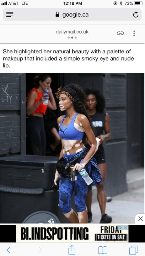 肌の一部の色素が無くなり白くなる「尋常性白班」という疾患を抱えながら、人気モデルとしてファッション界で活躍するウィニー・ハーロウ(24)は、英Daily Mailに自分の記事が載っているのを発見。