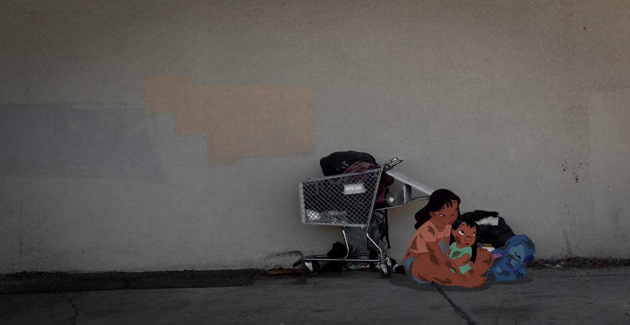 住む場所や仕事を失い「ホームレス」になってしまったリロとナニ、そしてスティッチ