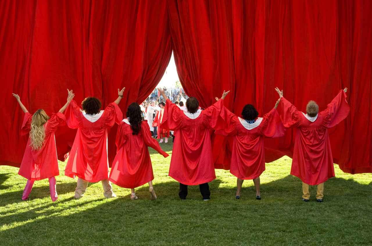 クライマックスで歌う「ハイスクール・ミュージカル」という曲の最後に、メイン6人の目の前に真っ赤なカーテンが落ちるシーン。