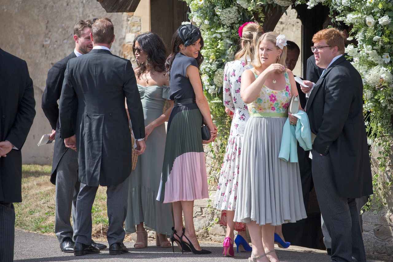 8月4日に37歳の誕生日を迎えたメーガン妃。王室入り後初のバースデーとなったこの日、ヘンリー友人の幼なじみの結婚式に出席した彼女は、ダークネイビーを基調としたエレガントなファッションを披露して話題となった。