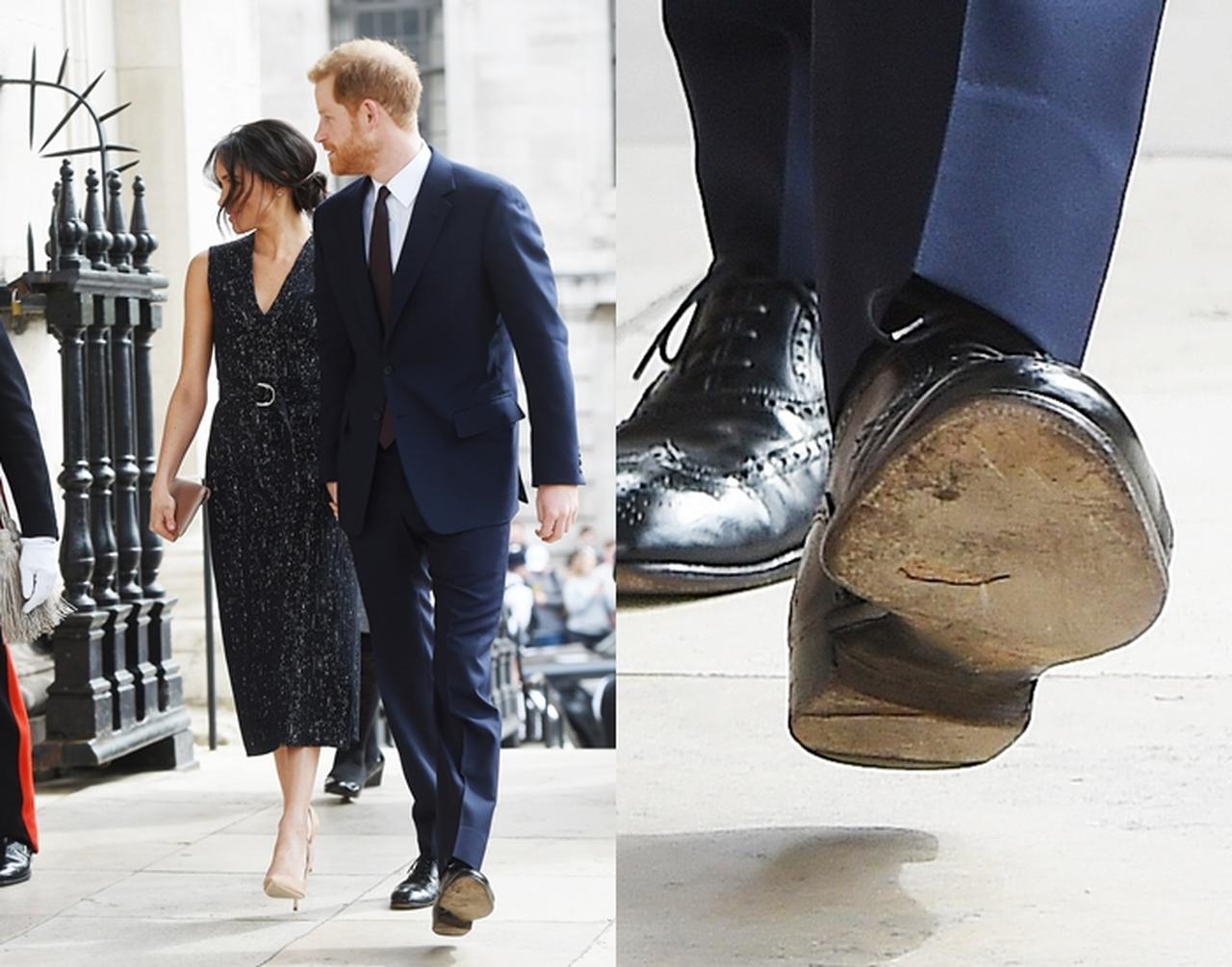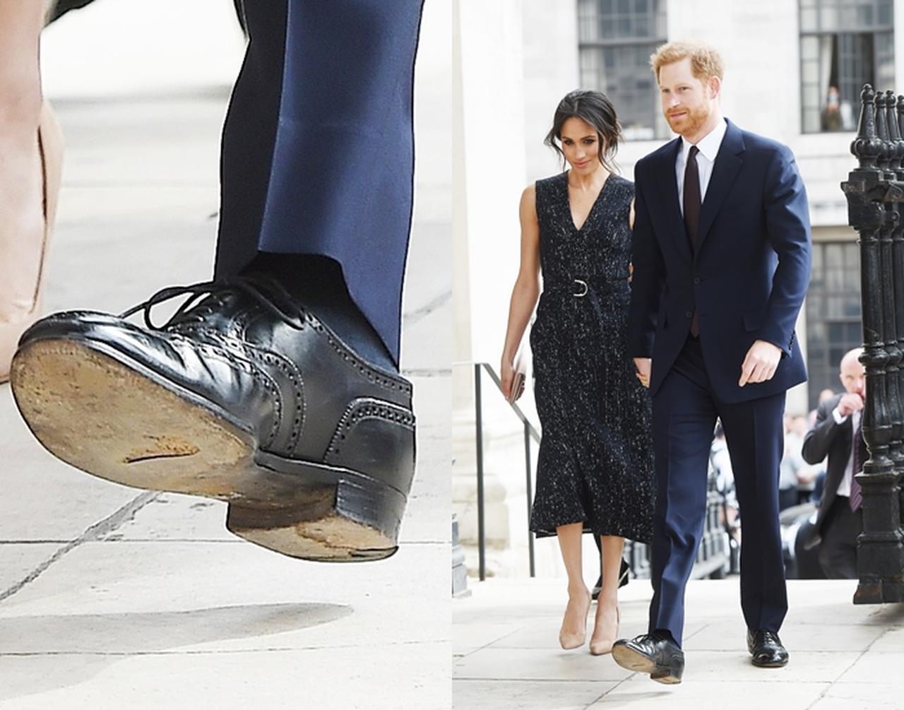 ヘンリー王子が着用していた黒い革靴の底には、なんと巨大な穴が開いていたのだ。