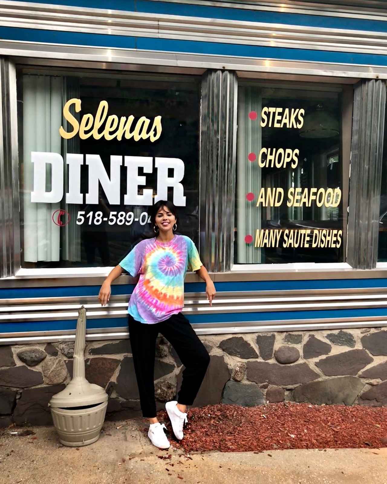 自分の名前と同じ「セレーナ」という名前のダイナーの前で記念撮影。
