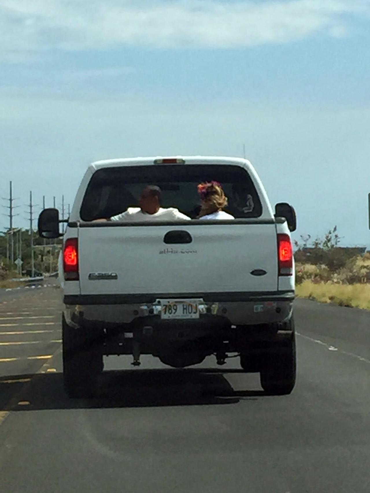 ハワイ旅行中のひとコマ。いつもはプライベートジェットなどで移動しているビヨンセとジェイだが、この日はトラックの荷台に飛び乗り、景色を堪能。