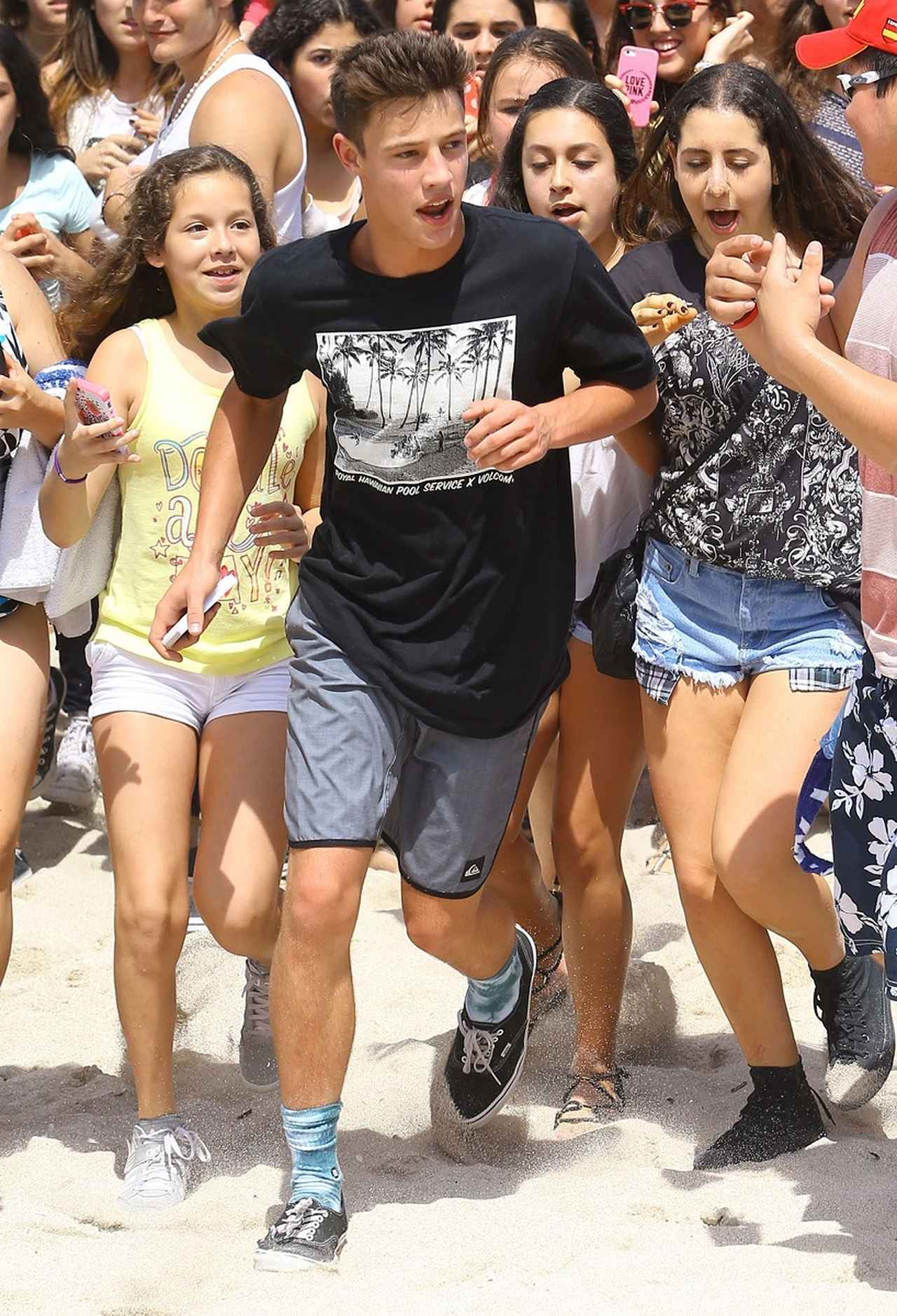 大勢の女性ファンに追われるキャメロン。当時のマグコン・メンバーにはシンガーのショーン・メンデスもおり、キャメロンは若手SNSスターたちのリーダー的存在を務めていた。