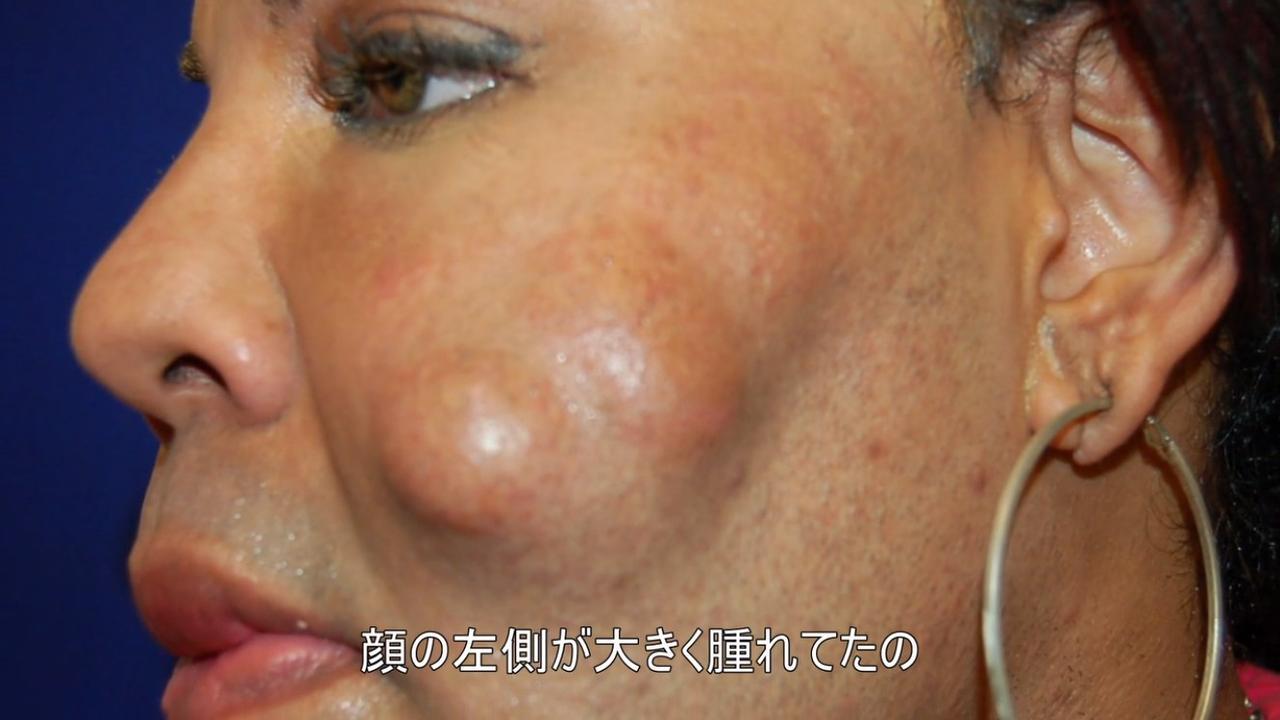 もっとフェミニンな顔つきになりたいというトランスジェンダー女性の夢は、施術を任せた相手を間違ったことから悪夢に。施術直後はふっくらした顔まわりを喜んだという女性だけれど、約1年後のある朝、顔の左側が腫れあがったかと思ったらそのまま破裂。あたり一面に緑色の物質が飛び散り、中に入っていたのが、建設現場で使われるセメントの一種だったことが判明。アメリカには「パンピング・パーティー」と呼ばれる低価でシリコン注射ができる闇パーティーがあり、違法なうえ死者が出ることも。そこで施術を受けたという女性の体験談は、多くの場合が体に害のあるものを注入されるというパンピング・パーティーの真実を物語った。