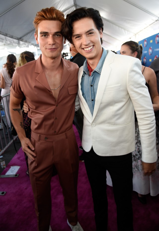 『リバーデイル』のファンからしたらどちらも貴重な写真に違いはないが、K.J.の邪魔が入ったことによって、ツーショットではなく“スリーショット”になってしまった。(フロントロウ編集部)