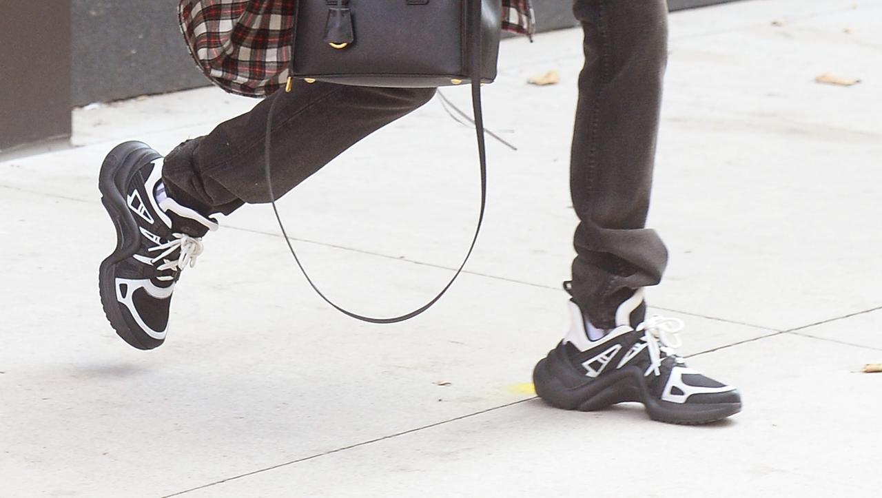 スニーカー好きのヘイリーが合わせたのは、Louis Vuittonのハイテクスニーカー。