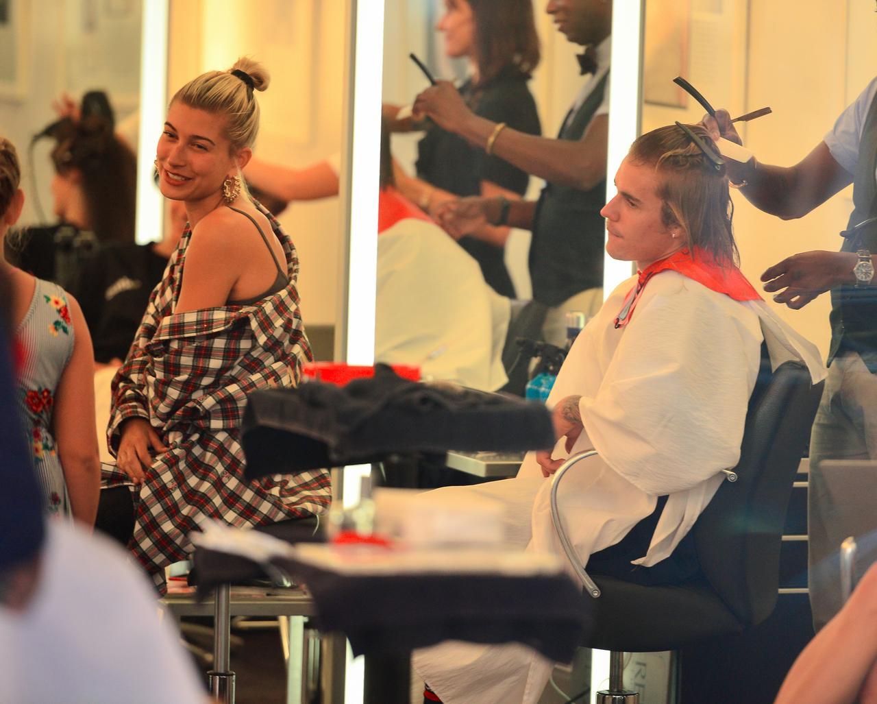 この後すぐジャスティンと合流し、一緒にヘアサロンへ。ジャスティンがヘアカットするのを隣で見守っていた。(フロントロウ編集部)