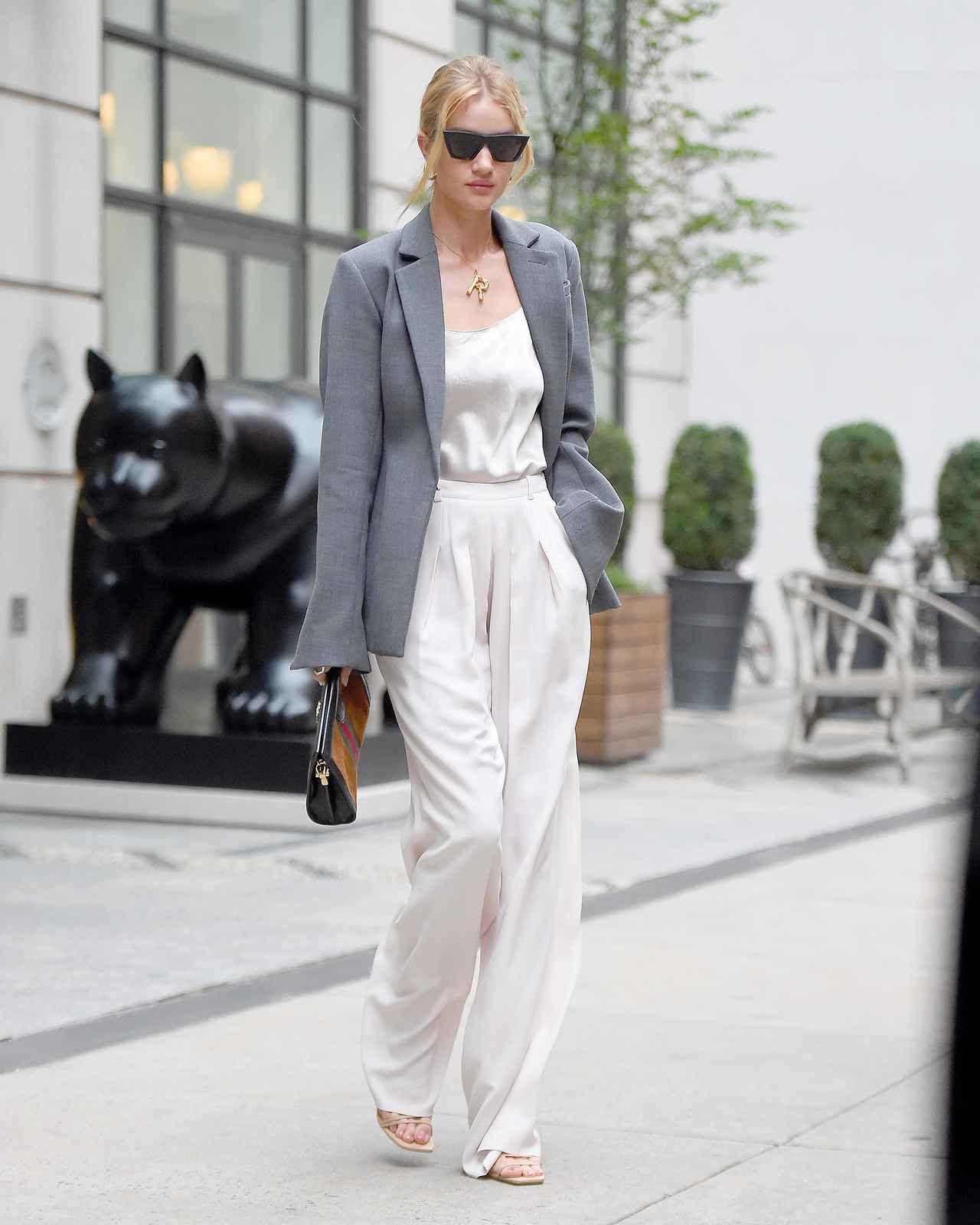 辛口かつレディなコーデが大得意であるモデルのロージー・ハンティントン・ホワイトリー。1児の母でもあるロージーが披露した、真似したくなる大人な白パンツルックを拝見。小物使いまで気をつかったコーデ術はさすが!
