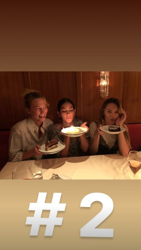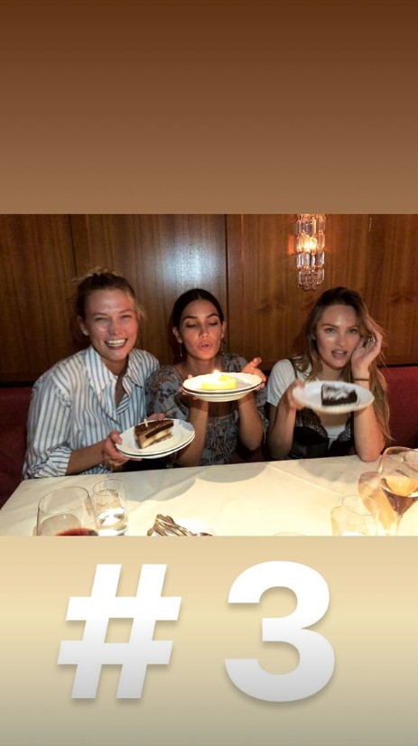 ヴィクシーモデルのキャンディス・スワンポールとリリー・オルドリッジ、そして元ヴィクシーモデルのカーリー・クロスが、友人も含めてニューヨークでディナー。