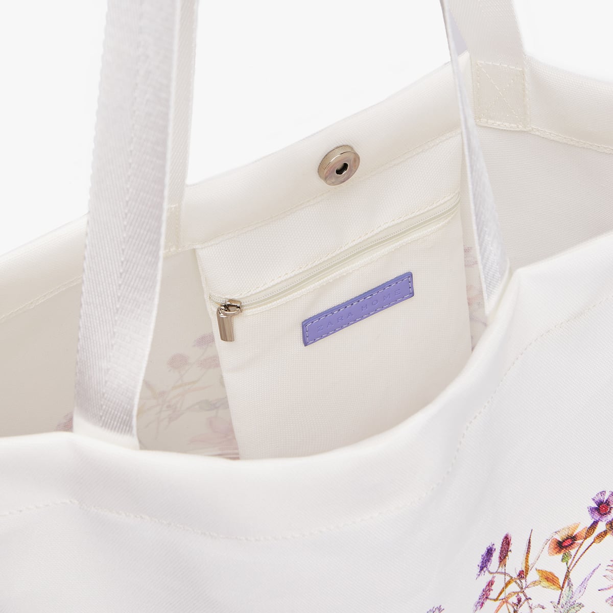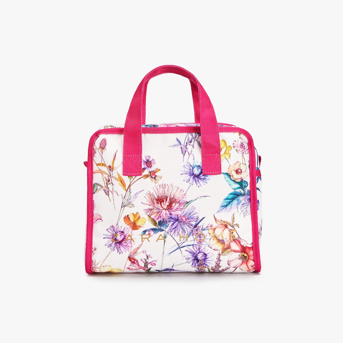 大胆なフラワープリントがキュートな、内ポケット付きのトートバッグ。肩掛けできる長さのショルダーが使いやすいデザイン。