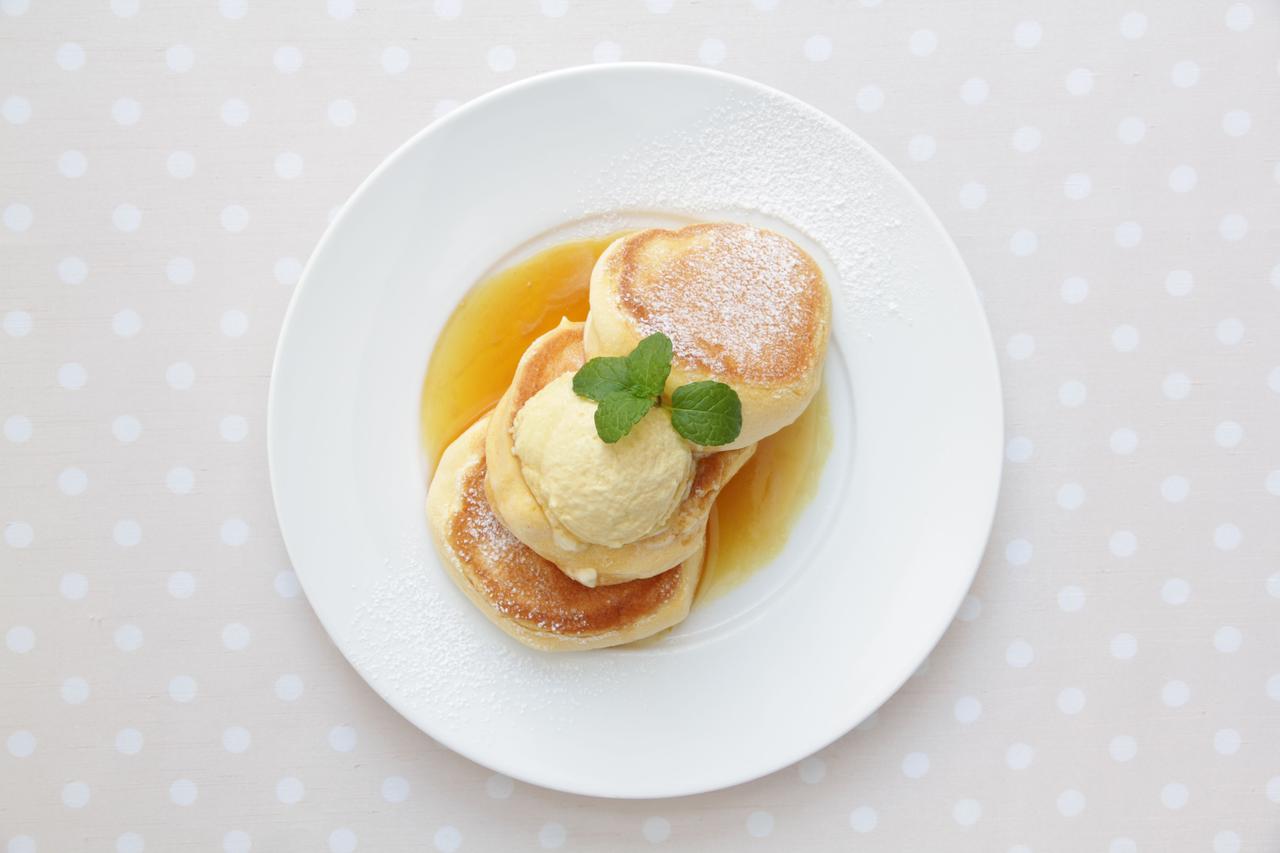 通常のパンケーキと『幸せのパンケーキ』の大きな違いは、その“ふわふわ食感”。手間ひまをかけたその調理工程に秘密がある。
