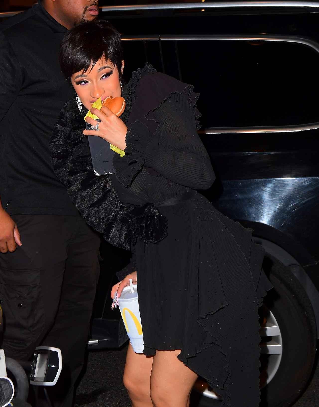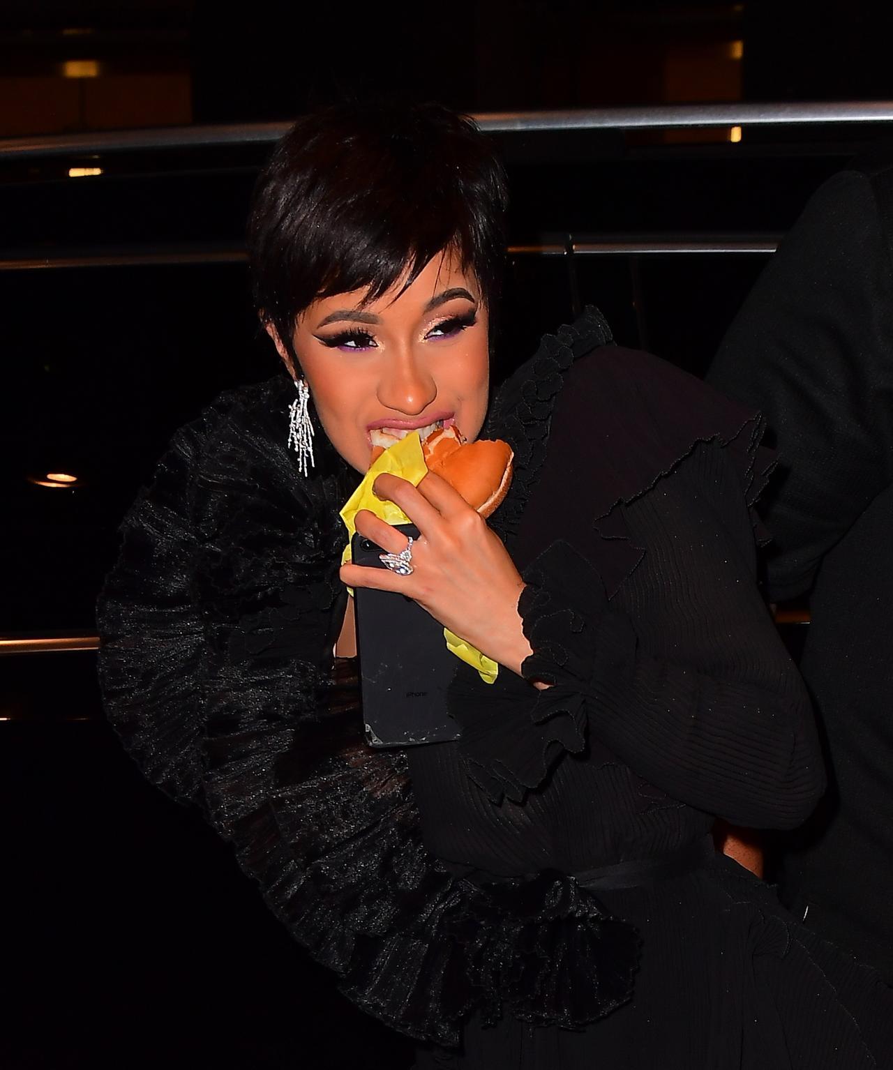 よっぽど空腹だったのか、パパラッチがいてもハンバーガーにかぶりつくカーディ。