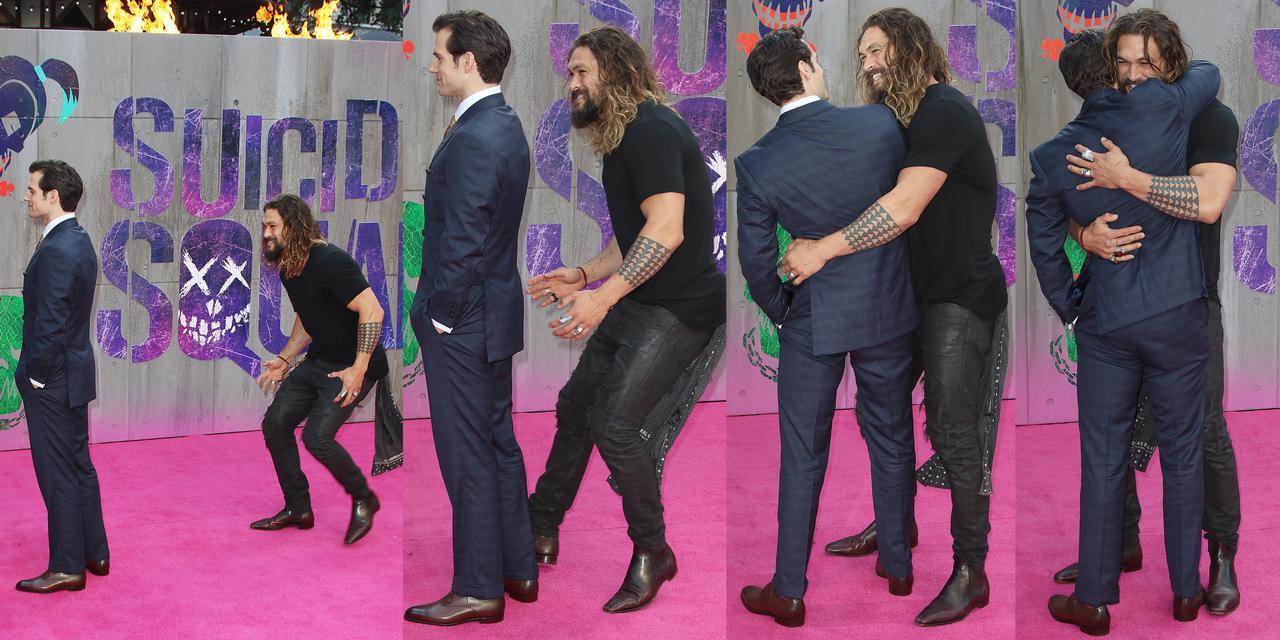 ジェイソンが後ろからハグしたのは、『ジャスティス・リーグ』で共演したイケメン俳優ヘンリー・カヴィル。