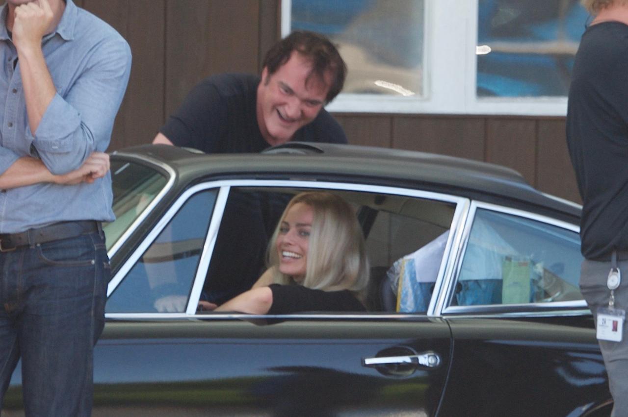 撮影中に談笑するタランティーノ監督とマーゴット。