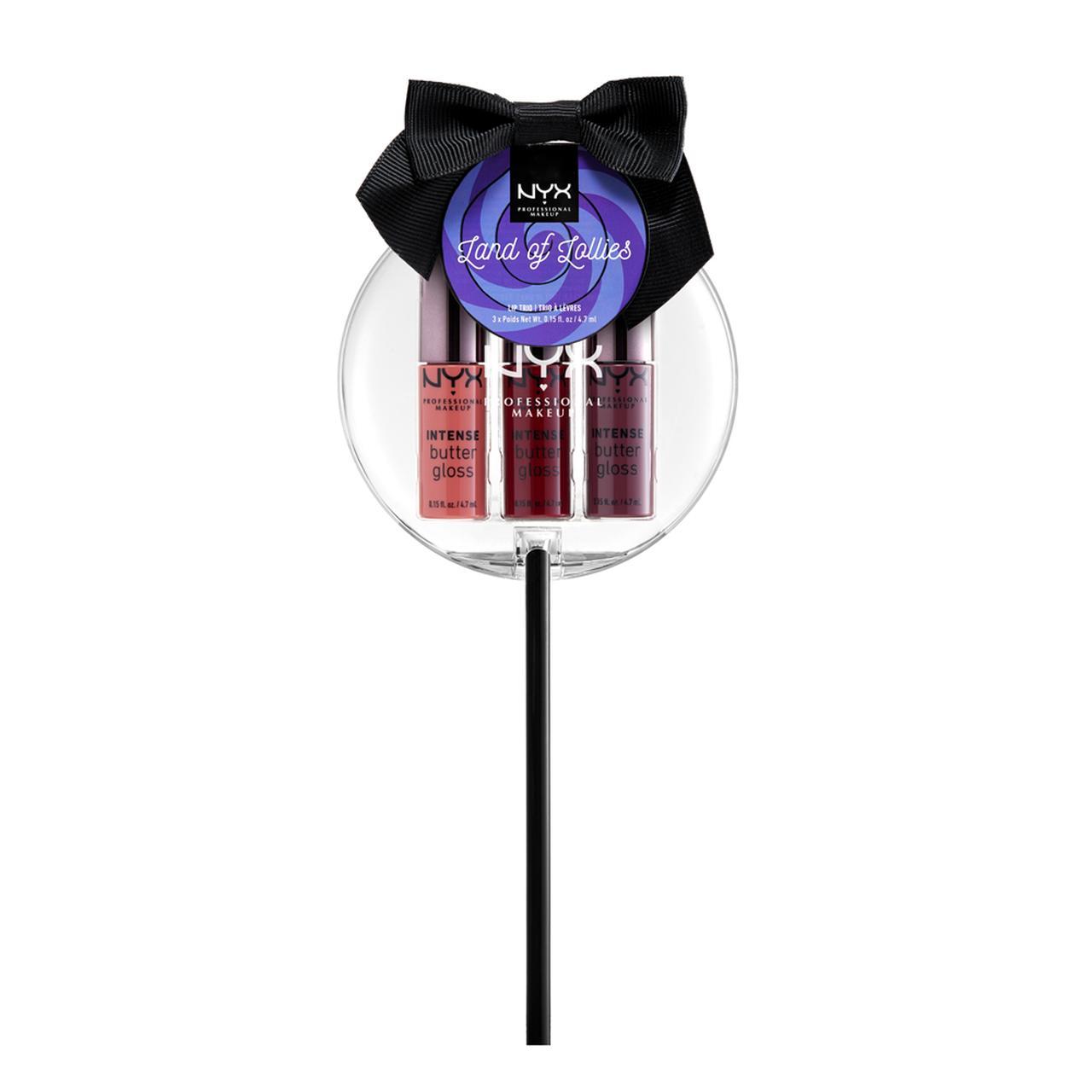 リップ3色が入ったロリポップ状のキュートなオーナメント。ミニサイズのソフト マット リップクリームとインテンス バターグロスから選ぶことができる。