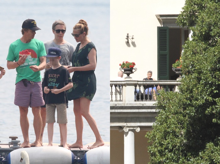 先日、ヘンリー王子とメーガン妃が訪れたとウワサされたこの家には、過去にジュリア・ロバーツと家族(左)などが遊びに訪れた。もちろんジョージがプライベートでリラックスする姿も(右)。