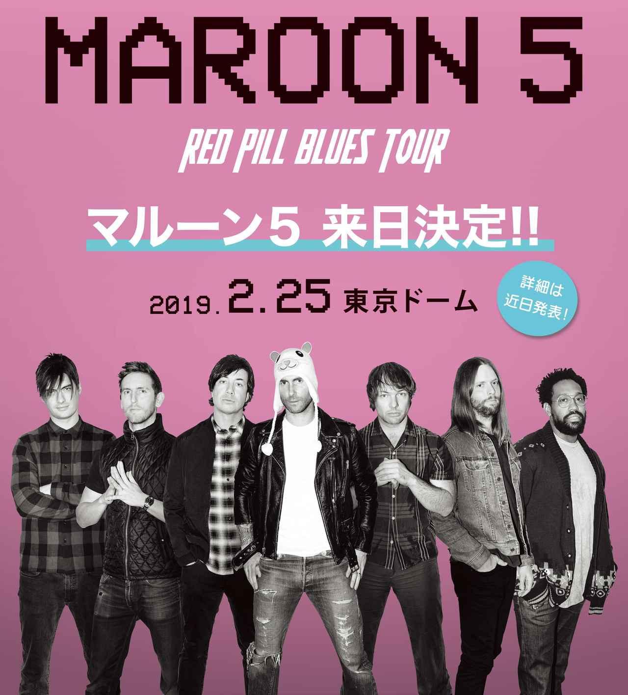「ガールズ・ライク・ユー」や「コールド feat. フューチャー」など、ヒット曲を飛ばし続ける人気バンドのマルーン5が来日することが決定。現在ニューアルバム『レッド・ピル・ブルース』をひっさげて「Red Pill Blues Tour」を行っている彼らが、2019年2月25日(月)に東京ドームで来日公演を行う。
