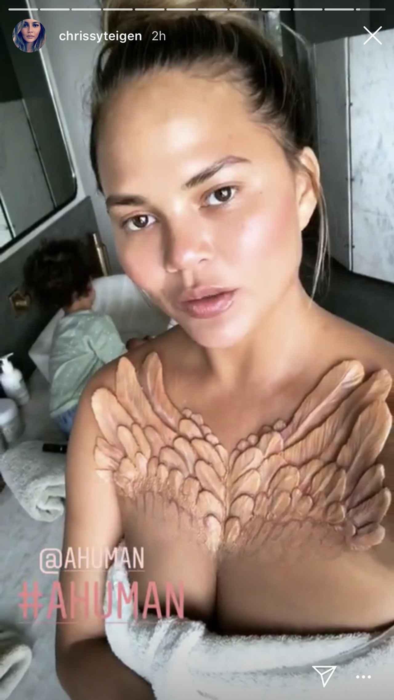 キムは友人として、サイモンのアート展を多くの人に知ってもらうためにPRを行っていたのだ。キムだけでなく、キムの友人であるクリッシー・テイゲンも胸元に羽根をつけて写真を投稿。