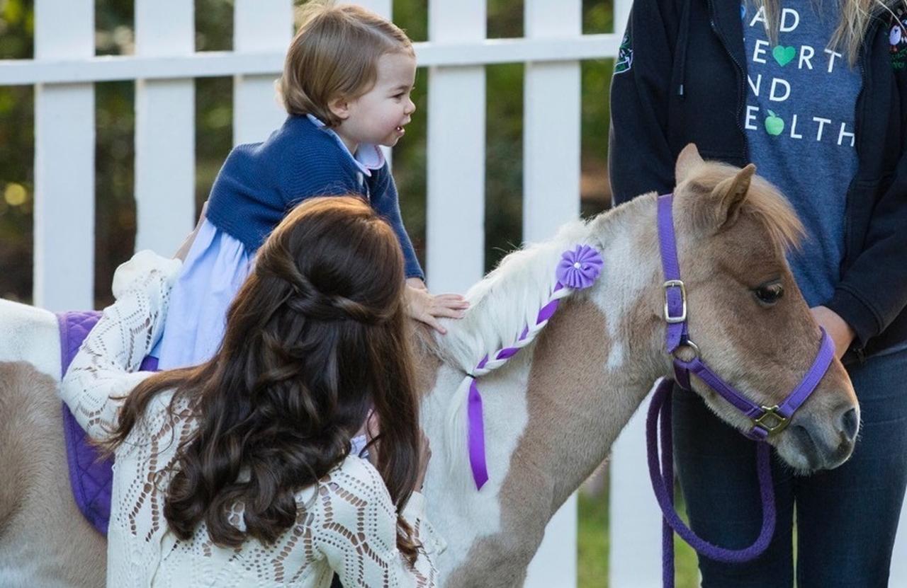 2016年の秋にカナダを訪れた際にポニーに乗っていたシャーロット王女。