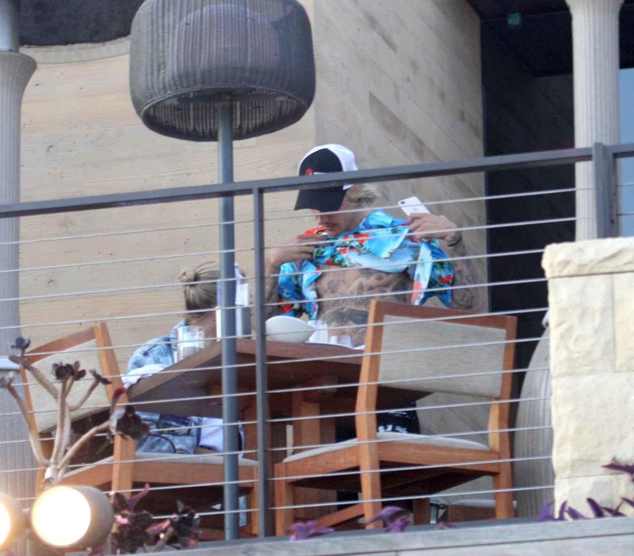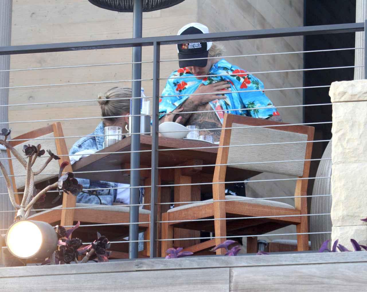 シンガーのジャスティン・ビーバーと婚約者でモデルのヘイリー・ボールドウィンが、レストランのテラス席で何やら怪しい行動…!?