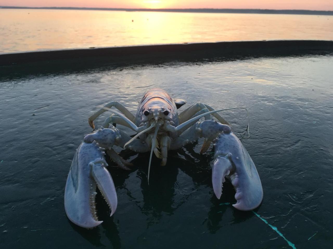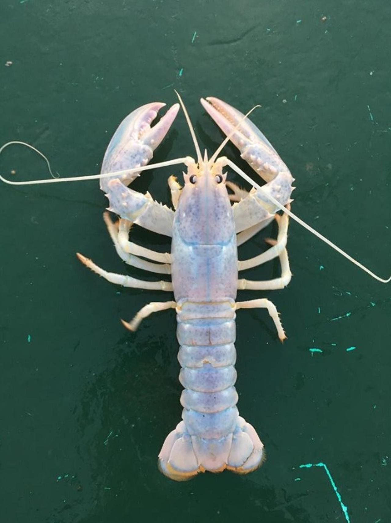 発見者となった漁師の男性が、フェイスブックを通じて、表面がうっすらと白みがかった半透明の殻で覆われたロブスターの写真を公開。