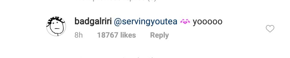 このコメントにリアーナは笑い泣きしている絵文字をつけ、言葉にならなかったのか「yooooo」と珍しくタジタジな様子。