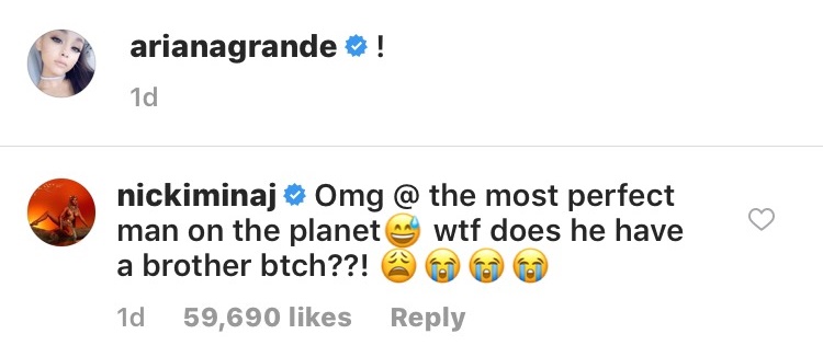 アリアナの投稿に「オーマイゴット。地球上で最も完璧な男性ね。彼に兄弟とかいないわけ?」とコメントしたニッキーは、ピートを「地球上で最も完璧な男性」と表現してベタ褒め。
