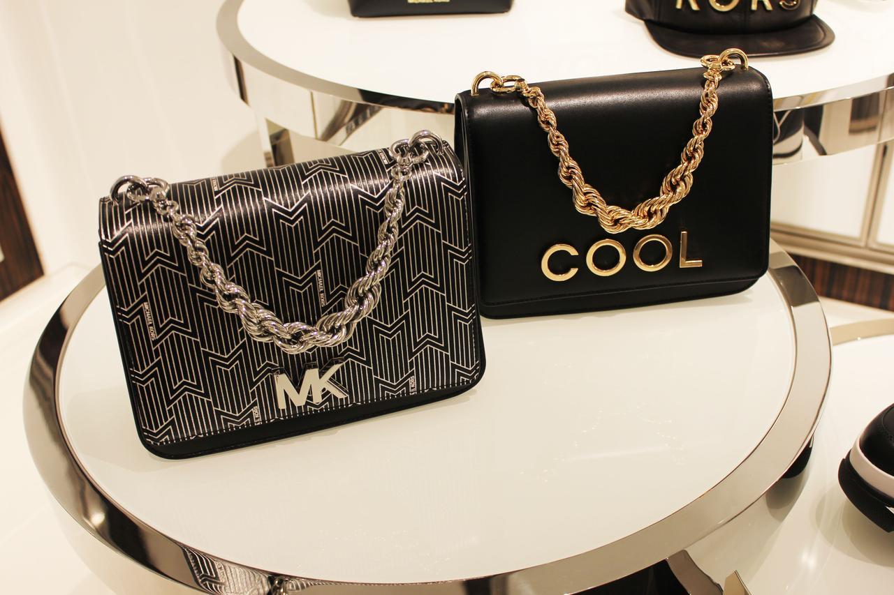 カプセル・コレクション”#MKGO”より、グラフィカルなロゴとツイストチェーンがアクセントになったバッグなど、モダンにアップグレードしたマイケル・コースらしいアイテム。